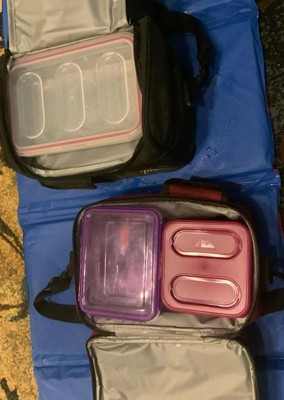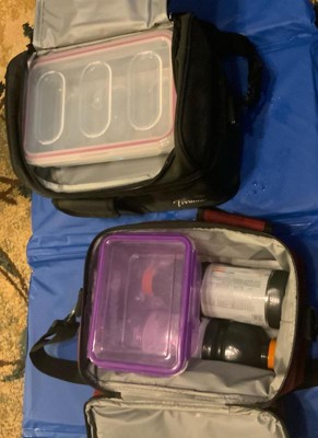 Spacious lunch boxes and love that they have two compartments and a sturdy adjustable strap. I bought 2, one red, one black. I have two boys in sports and lunches on the road is a must. I can easily fit 2-20 once Gatorades, 2 sandwiches (in sandwiches bags), fruit (Apple/banana/orange) whole, Plus an ice pack if needed in the larger compartment, the smaller I can fit the chips, dessert snacks, utensils. For office lunches it can hold plastic containers Just fine. For the most part it's an easy rinse and pat dry to clean. I've had the lunch boxes almost a year and they still are holding really well especially with rough handling by boys.