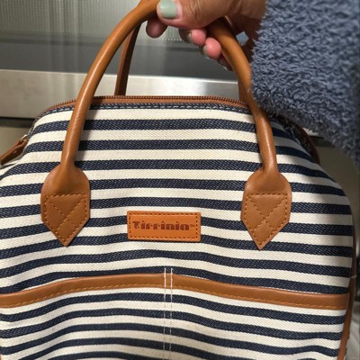 I absolutely adore this lunch box! First it is so fricken cute and chic I got the grey stripes which are sort of a grey/navy stripe. There are pockets inside and two on the outside so I always put my phone in the outside one when walking into work if I'm wearing pants without pockets (dress pants UGH). My absolute favorite part of this lunch bag is how much it can hold. I drink alot of water and I can pack in 1L essentia, 3-4 16oz Poland spring bottles and a sandwhich for lunch. Its handy and i get tons of compliments