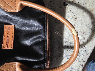 Described as leather handles, are definitely vinyl. Started to peel shortly after use. Also insulated interior has begub to crack.