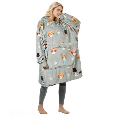 Tirrinia Fleece Blanket Hoodie Sweatshirt for Womens, Oversized Wearable Blanket Pullover with Hooded, One Size, Gift for Her, Gray