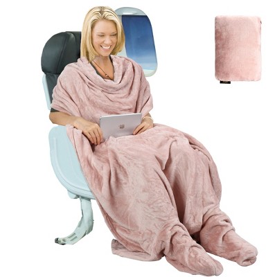 Tirrinia Travel Blanket Pillow Soft Bag Pockets, Airplane Plane Flight Car Essentials Compact Set Packable, Travelers Accessories Gifts, Flesh Pink