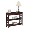 Style your home with the geometric design of the Titan 1 Drawer Console Table with Shelves by Breighton Home. This transitional table features a pull-out drawer on smooth roller slides and includes two stylish drawer knobs for easy accessibility. This spacious drawer offers plenty of room to stow away entertainment essentials and everyday necessities. The unique dimensional side panels and the three tiers of shelving make this console the perfect decorative piece to display in any room of your home. Carefully crafted from MDF, non-lead-based paint, and particleboard, this unit was made for long-term use. Bring home coordinating pieces from the Titan Collection by Breighton Home, each sold separately.
