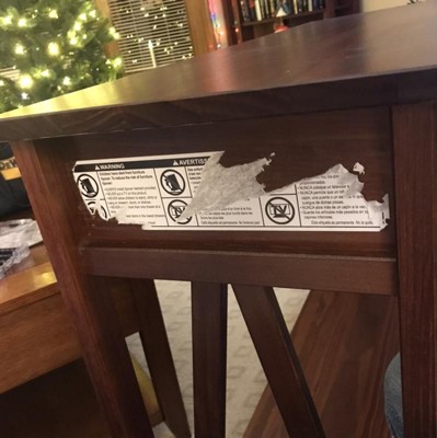 This table is very pretty. However, a few warnings - the drawer does not work properly. Not sure what’s wrong with it. I’m going to look into putting new tracks on it or sanding it down which is super annoying. It won’t come in and out without really pulling on it and when it does come out, it’s super hard to put back in. I tried to post a pic with the drawer open, but I couldn’t get it open with one hand because the whole thing would fall over. Also, there’s a warning on the side about it being flimsy (child hazard) and it’s permanent. I understand why it’s there, but I think it could’ve been put in a less conspicuous spot. Who had furniture that has a huge, visible wanting sign?