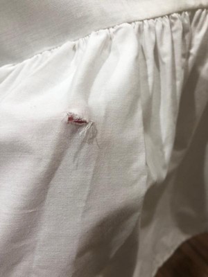 This was inexpensive so you get what you pay for. It’s nice enough, I actually thought it was super cute, simple and perfect until I laid it totall out and started steaming it. That is when I noticed a hole in the skirt. It’s a shame! So quality isn’t great, that side will go against the wall I guess.