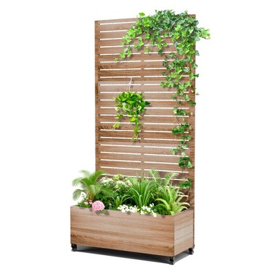 TOAOTBNBO Metal Planter Box with Trellis and Wheels, Raised Garden Bed with Trellis, Garden Box with Privacy Screen for Climbing Plants, Vegetable