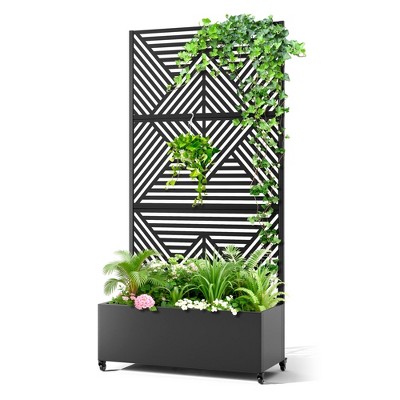 TOAOTBNBO Metal Privacy Screen with Brick Pattern, Outdoor Planter Box with Wheels, Modern Raised Garden Bed for Garden and Patio, Black
