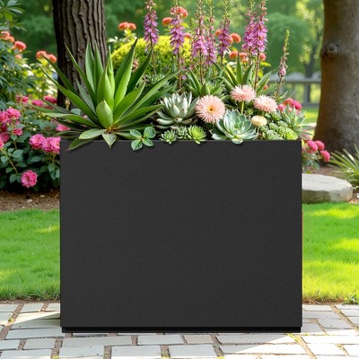 TOAOTBNBO Metal Planter Box with Removable Shelf, Tall Rectangular Planter with Drainage Holes for Garden and Porch, Black