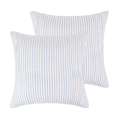 The Tobago Stripe euro shams are the perfect complement to the Levtex Home Tobago Stripe collection. This is the perfect accessory to add a layer of dimension and truly complete your bedroom. Sized at 26 x 26 in., the euro shams feature a classic pin stripe on a white ground. Made from 100% cotton, the Tobago Stripe euro shams are easy to care for. They come as a set of 2 without a filler.