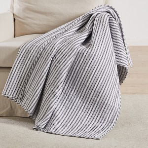 - LEVTEX TOBAGO STRIPE CHARCOAL QUILTED THROW: This quilted throw is made from a classic ticking stripe pattern. Perfectly sized at 50x60in., the Tobago Stripe Charcoal throw is so versatile. Drape it at the end of your bed or on your favorite, cozy chair; snuggle up with it in front of a fire in winter; or throw it over you just as the sun goes down as you enjoy a cool Spring or Summer evening outdoors.