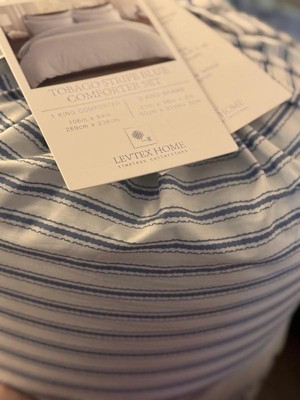 - LEVTEX TOBAGO STRIPE BLUE : The Tobago Stripe Blue comforter collection is a classic ticking stripe. The set consists of a comforter and matching pillow shams.