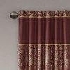 The alluring jacquard weave is inspired from an updated paisley motif and is woven in beautiful hues of burnt red, gold, and a hint of platinum for a shimmering accent. The window panels are pieced with solid faux silk and beautiful flat piping details in gold, creating an elegant look. While also achieving the OEKO-TEX certification, meaning it does not contain any harmful substances or chemicals, ensuring quality comfort and wellness. Rod pocket or back tabs top finish makes this curtain easy to hang, open, and close panels throughout the day; while fitting up to a standard 1.25" diameter rod. Coordinating bedding is also available and sold separately. Product Details 50x108" 2 Window Panels:50"W x 108"L (2) Material 100% polyester, rod pocket and back tabs