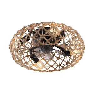 TOBILI Ceiling-mounted Jute Rope Fan Light Strip with 4 Bulbs,Dimmable,7 Dlades