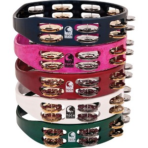 The Toca Colorsound tambourine is made of lightweight acacia hardwood and combines nickel-plated and brass-plated double-row jingles. This combination delivers balanced, projecting, dry and lively sounds.