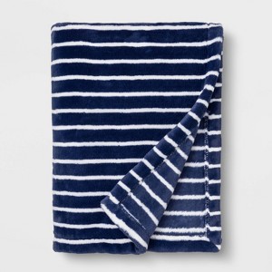 Toddler Bed Plush Blanket - Cloud Island™ Navy Stripe