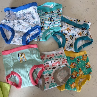 Leave the world of diapers behind with the Toddler Bluey 6-pk Training Underwear. Designed from breathable material with cute prints, these training underwear add fun to their daily routine. The full elastic waistband provides a snug fit while allowing easy wear. With this pack of 6 Toddler Bluey Training Underwear, you'll have enough to keep your child feeling confident and dry during the potty training process.