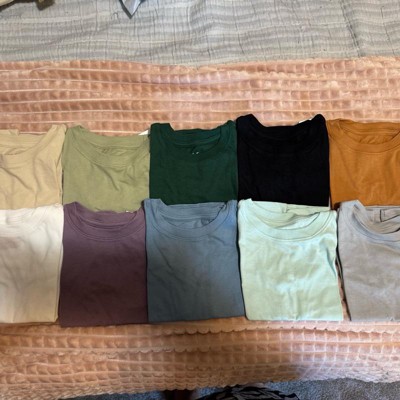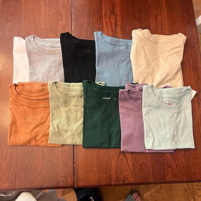 [This review was collected as part of a promotion.] My four-year-old son is wearing these plain T-shirts by cat and Jack. These come with 10 different colors they fit him great I would say these run a tad bit big as he had another shirt underneath when he tried them on. The material was really soft. These will go with every outfit that he owns with the variety of colors that come in the packs. Great plain tshirt for everyday use. I received an incentive to write this review.