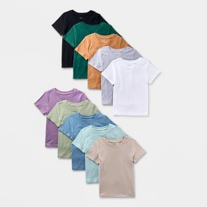 Bring a rainbow of colors to your toddler's wardrobe with this 10-Pack of Short-Sleeve Solid T-Shirts from Cat & Jack™. Made from cotton-recycled polyester blend jersey fabric, these short-sleeve T-shirts bring cool comfort to their day, while the below-waist length allows them to wear them tucked in or untucked. This pack includes 10 crewneck tees, each in a different solid color, to give them loads of everyday options.