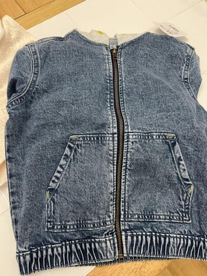 Refresh their casual wardrobe with the Denim Hooded Jacket from Cat & Jack™. This denim hooded jacket is made from midweight cotton-spandex blend fabric for cozy comfort. It's designed with a front full-length zipper for easy layering and versatile wear, while the attached hood offers them extra toasty comfort. Best of all, the kangaroo pocket comes in handy for stashing small items.