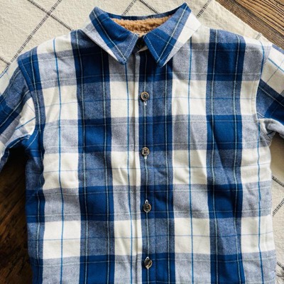 This Faux-Shearling Lined Sweatshirt from Cat & Jack™ seamlessly blends fashion with function. Made from 100% cotton with faux-shearling lining, this long-sleeve flannel shirt offers the warmth to enjoy their little adventures. Tailored in a relaxed fit, it has a button-down front for ease of wear and a collared neck for classic style.