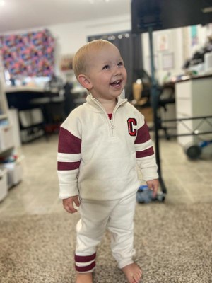 This fleece set is super adorable and soft and cozy! I like the simple details. It’s a cute, classy and sporty vibe that I think would also look great on a girl! The only thing I would change is to lose the cream color and go with a grey that will hide stains just a smidge better!!