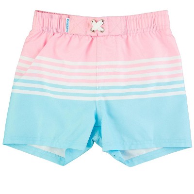 Bring whimsical flair to your toddler's swimwear with these Shark Bite Swim Shorts from Cat & Jack™. These regular-rise swim shorts are made from 100% recycled polyester fabric and lined with built-in briefs for comfortable wear in or out of water. The UPF 50+ rated material offers protection from harmful UV rays, while the full elastic waistband with a front drawstring provides a snug, adjustable fit. Featuring a colorblock design in navy, blue and pink with shark teeth accents, these swim shorts will lend fun style to their swimwear.