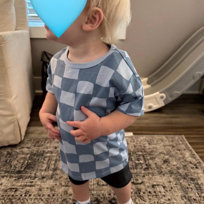 [This review was collected as part of a promotion.] This is not just a basic t-shirt, and I am here for it! The adorable yet modern blue checkered pattern is unique and not like traditional baby clothes. The collar has a ringer look to it which elevates the tee. It has a little bit of a drop shoulder as well. It does fit a little boxy but I sized up for my kiddo to grow into so the length is good for us. My son wears 18-24m currently and I bought 2T in this shirt. I received an incentive to write this review.