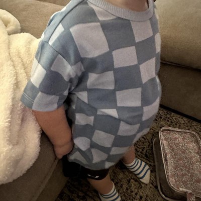 [This review was collected as part of a promotion.] This is not just a basic t-shirt, and I am here for it! The adorable yet modern blue checkered pattern is unique and not like traditional baby clothes. The collar has a ringer look to it which elevates the tee. It has a little bit of a drop shoulder as well. It does fit a little boxy but I sized up for my kiddo to grow into so the length is good for us. My son wears 18-24m currently and I bought 2T in this shirt. I received an incentive to write this review.