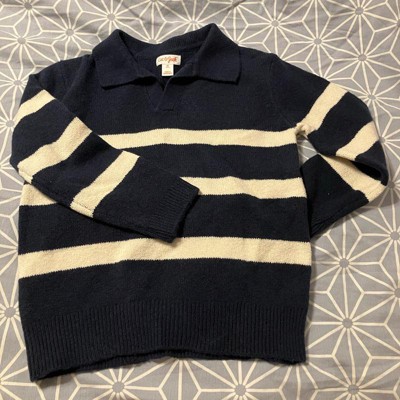 Whether going to the park or grocery shopping, your kid will look awesome in this Striped V-Neck Sweater from Cat & Jack™. Made from soft, stretchy fabric for unrestricted movement, this long-sleeve sweater features a striped design that adds a sweet charm to their outfit. It is fashioned in a collared neckline with V-notch and boasts ribbed cuffs and hem for a snug, cozy fit. Tailored in a standard fit, you can have them pair this below-waist sweater with chinos, jeans or jogger pants for a cool, relaxed look.