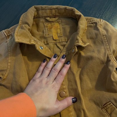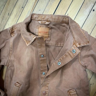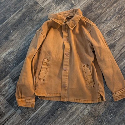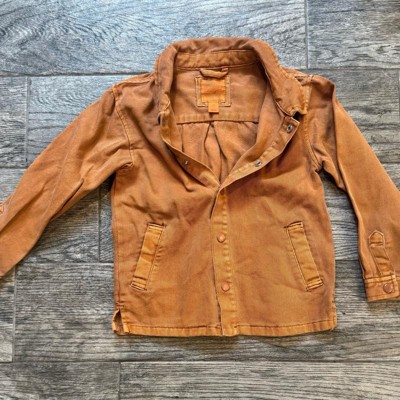 • A: Hello Kim- We appreciate your interest in this Toddler Boys' Twill Snap Front Jacket. Lighting, screen settings, and photography can make warm neutrals like tan/brown look more orange in some images.The product is sold under the “Brown” color name on Target’s site. - Auria