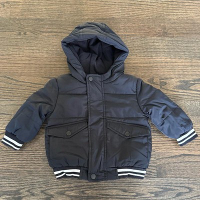 [This review was collected as part of a promotion.] How adorable is this toddle varsity stripe puffer jacket by cat and jack?! I bought this as a gift for my nephew who is turning one next month. He currently wears a size 9-12 months so I got this in the 12 month size to allow for growth throughout the winter months. The quality is great and it has a zipper that can be covered by the Velcro closure and well as buttons. It has pockets also for mittens!