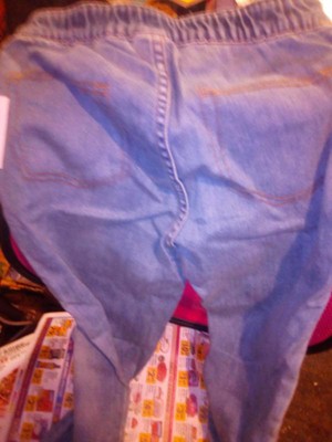 I love how these look like normal light wash jeans, light stretch material with a mock front snap and they have an elastic waistband ( not adjustable)to accommodate briefs, pull-ups or diapers aka diaper friendly. I did not like that the jeans had sew-on pockets or the zippers on the sides. I love the snaps on the legs in order for easier going on and to accommodate AFO's. Overall I felt that the product was okay, could better quality.