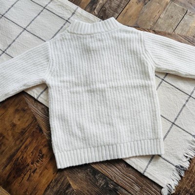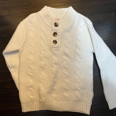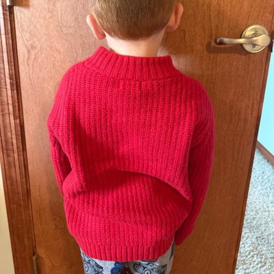 [This review was collected as part of a promotion.] This toddler boys mockneck knit sweater is really soft & thick. It would look really good for a toddler to wear for some cute fall & Christmas photos. Love the big buttons on the front & knitted design. My son usually wears 4T since he is 4yrs old but this was a little big on him. The sleeves were long & might be a better fit for a 5yr old. Overall I do love the look of this sweater! I received an incentive to write this review.