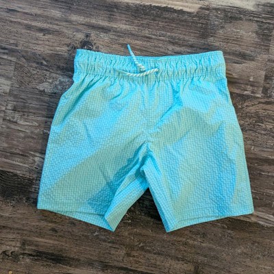 Toddler Boys' Seersucker Solid Swim Trunks - Cat & Jack™ Bright Aqua