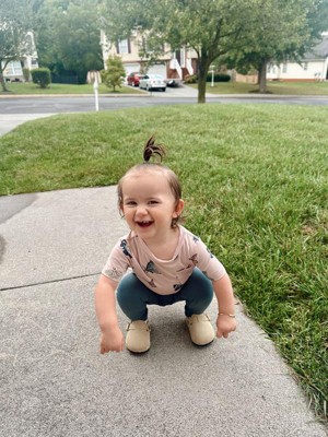 [This review was collected as part of a promotion.] We love the toddler crew neck t shirts! The blush butterfly print is so pretty and can match with several different colored bottoms!