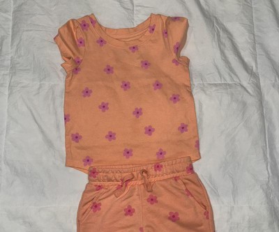 Your little one ready to kick back, run or play in cute style with these Daisy Knit Shorts from Cat & Jack™. The mid-rise shorts are made from midweight French terry fabric to keep your child in absolute comfort no matter where the day takes them, and they're decorated with daisy florals popping in pink from the peach-orange backdrop for a delightful look. The full elastic waistband with a front drawstring provides a secure fit, while the side pockets give them a spot for holding their favorite toys.