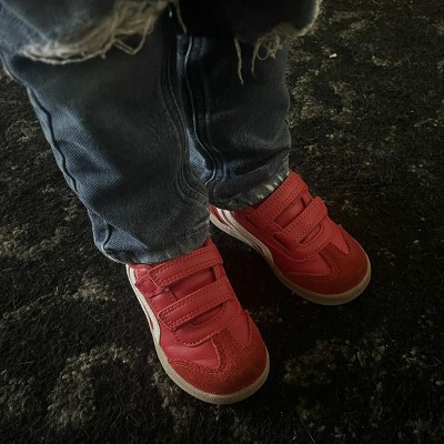 Add some throwback vibes to your little one's shoe wardrobe with these Dakota Retro Court Sneakers from Cat & Jack™. These closed-toe sneakers boast a faux-leather upper, round toe, and soft polyester mesh fabric insole and lining. Enhanced with a double-strap front with hook-and-loop fastening, the shoes lend an adjustable fit to keep your toddler comfortable all day.