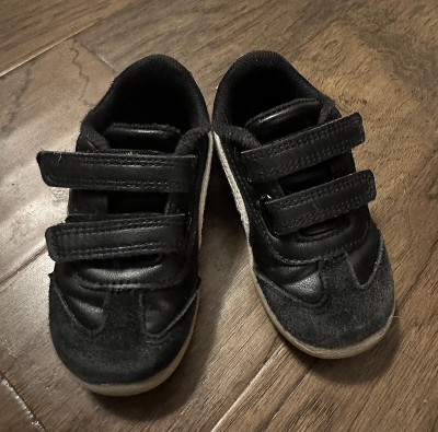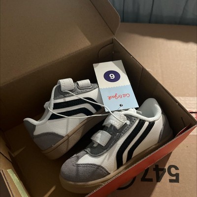 Add some throwback vibes to your little one's shoe wardrobe with these Dakota Retro Court Sneakers from Cat & Jack™. These closed-toe sneakers boast a faux-leather upper, round toe, and soft polyester mesh fabric insole and lining. Enhanced with a double-strap front with hook-and-loop fastening, the shoes lend an adjustable fit to keep your toddler comfortable all day.