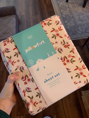 Pillowfort children’s bedding is a great and affordable way to spruce up your kid’s room. The sheet set comes with a standard pillow case, fitted sheet and a flat sheet. The floral print is pretty. The fabric washes well and doesn’t have too much shrinkage. The quality for the price is good.