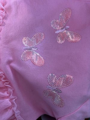 Toddler Girls' Butterfly Tulle Dress - Cat & Jack™ Medium Pink 12M: Short Sleeve, Pullover, At Knee Length