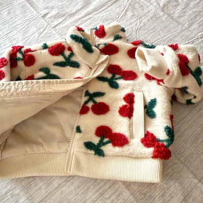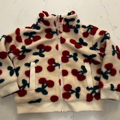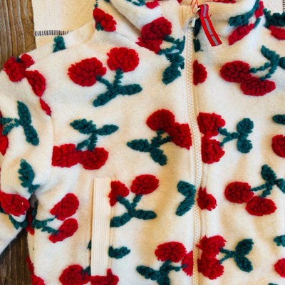 Toddler Girls' Cozy Cherry Jacquard Fleece Jacket - Cat & Jack™ Beige 12M