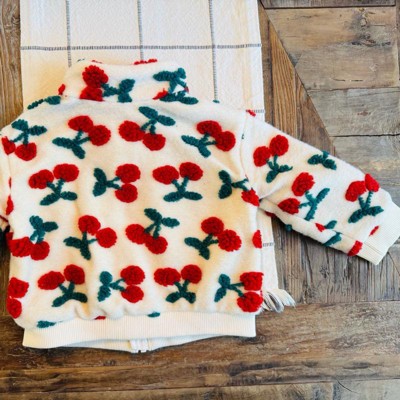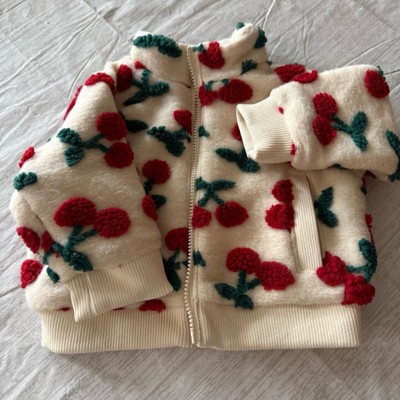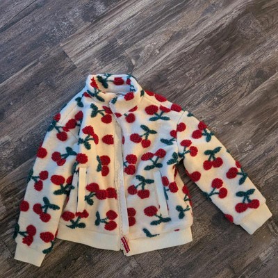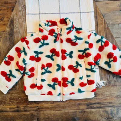 [This review was collected as part of a promotion.] This cozy cherry fleece jacket is absolutely adorable on my daughter! I bought this in a 2T & it fit her perfectly with a little to grow in. Love the style with the cherries scattered every where & the ribbed cuffs. My daughter loves putting her hands in the two front pockets as well. It seems like it would hold up well in the washer but since it is fleece I can see this collecting a lot of little bits of dirt from playing as my daughter does. The quality & value seem appropriate. I would recommend this jacket !