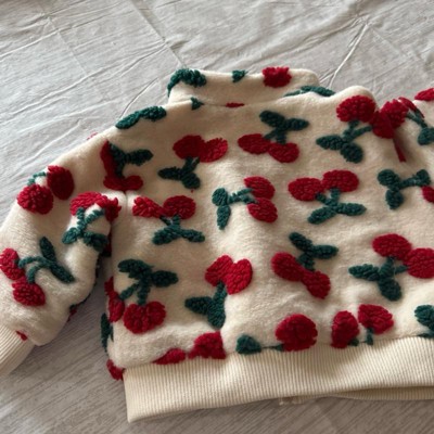 From school trips to outdoor plays, this Fleece Jacket from Cat & Jack™ will keep your kid ready for their cool-weather adventures. Made from 100% recycled polyester fleece fabric, this long-sleeve jacket features allover graphics of cherries for a sweet look. The front full-length zipper allows easy on and off, while the ribbed cuffs and hem provide a snug fit. Plus, the two side pockets give them space to stash gloves, beanies and other small items.