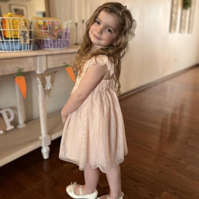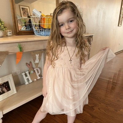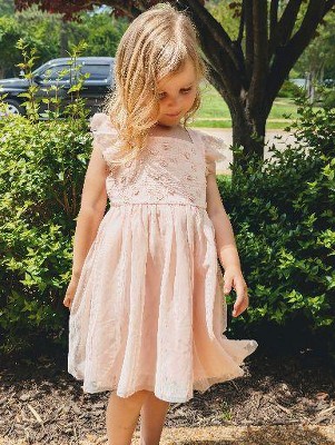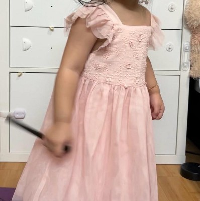 Bought this dress for my daughter’s Easter pictures & it was absolutely perfect. The tulle is very flowy & the top of the dress had decent give & stretch. Color is such a pretty pink & the embroidery of the flowers is adorable. Wish they had more colors because I fell in love!