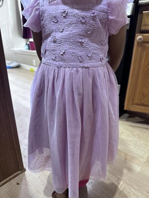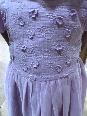 Toddler Girls' Embroidered Tulle Dress - Cat & Jack™ Lilac Purple 12M: Mesh, Cap Sleeve, Back Bow