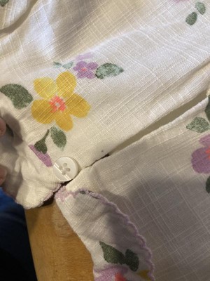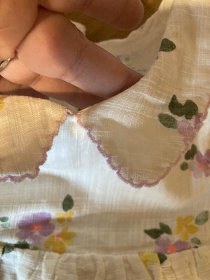 Toddler Girls' Floral Dress - Cat & Jack™ Cream 2T: Cotton A-Line, Puff Sleeve, Collared, Keyhole Back, Side Pocket