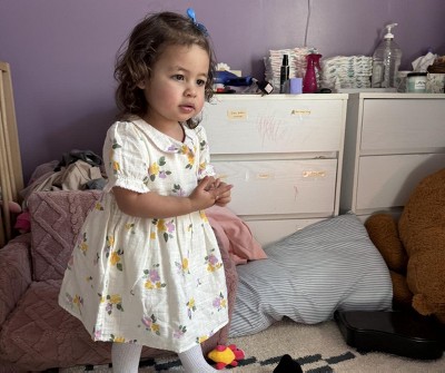 The print of this dress is so cute. It has a lining and pockets! My daughter is a bigger 3 year old and we had a bit of trouble getting it over her head and her arms in the sleeves. There is no stretch. Once on, it looked like the appropriate size but I wouldn’t buy it due this. If you have an average or smaller 3 year old it might not be an issue. There is a button closure at the back of the neck and I generally hate this in toddler clothing. It’s a very small thing but it’s a pain to do and sometimes my daughter’s hair get caught in it.