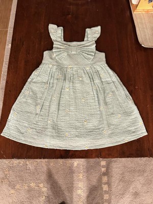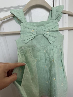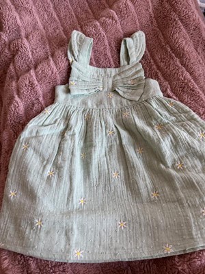 Toddler Girls' Floral Woven Dress - Cat & Jack™ Light Green 12M: Sleeveless A-Line with Embroidered Bow