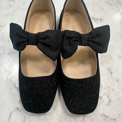 Toddler Girls' Juni Bow Ballet Flats - Cat & Jack™ Black 10T: Slip-On, Adjustable Strap, Square Toe