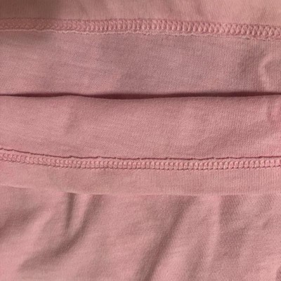 [This review was collected as part of a promotion.] This is a very pretty pink color. I found that it has a worn off look to it, especially around the pocket area where it looks like you’re wearing fabric that is aged. I would’ve really liked the pocket to have been the same tone pink as the rest of the shirt. The cotton fabric of the shirt is very nice and doesn’t stretch while wearing or after coming out of the wash. This is a size 5T and it fits my four year-old well.