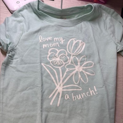 Help your little one display their love for their mother with this 'Love My Mom' Graphic T-Shirt from Cat & Jack™. Made from cotton-recycled polyester blend jersey fabric and featuring a tagless design, this short-sleeve T-shirt brings cool comfort to their day, while the below-waist length gives them the option of wearing it tucked in or untucked. Designed in a light green hue, this crewneck tee features a graphic showing a bunch of white-outlined flowers with the message "Love my mom a bunch" for sweet style.